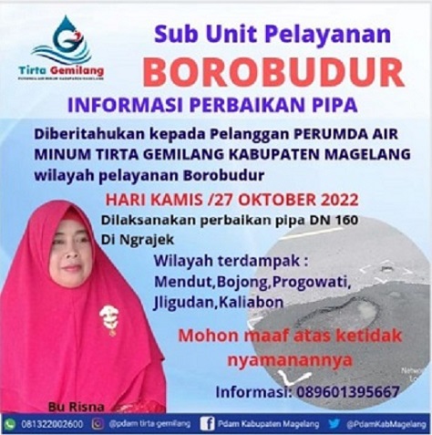 Perumda Air Minum Tirta Gemilang Kabupaten Magelang menyadari bahwa didalam memberikan pelayanan kepada masyarakat Kabupaten Magelang khususnya dalam pelayanan penyediaan air minum masih belum sepenuhnya sesuai dengan harapan, maka melalui sarana komunikasi dan informasi yang baik, mudah dan terbuka harapan pelayanan prima dengan terpenuhinya standar pelayanan minimal Air Minum di Kabupaten Magelang.